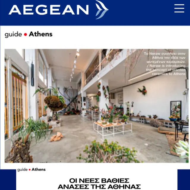 Συνδυάζοντας τις δύο αγάπες τους, ο Κωνσταντίνος, που συλλέγει παχύφυτα και κάκτους, και ο Γιώργος, που ασχολείται με κεραμική, ντιζάιν και αρχιτεκτονική, δημιούργησαν ένα ασυνήθιστο πάντρεμα φύσης και ανθρώπου. Το Neraw (νερό + raw) φέρνει στο σπίτι σας παράξενα φυτά, από κοντινά και μακρινά μέρη, μέσα σε κασπό φτιαγμένα στο χέρι. Με τα δικά τους λόγια, με το Neraw, «ο άνθρωπος μπορεί να επιστρέψει στη φύση μέσα από τις αρχές και τα αγνά υλικά της, παίρνοντας στο σπίτι του ένα ζωντανό έργο τέχνης που θα συνομιλεί πλέον μαζί του».