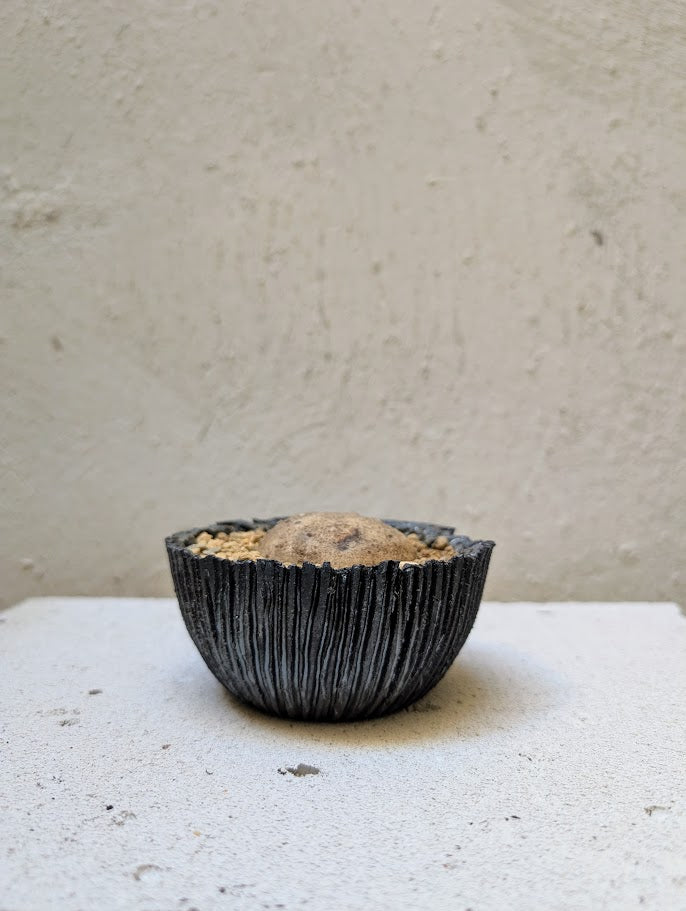 Low; requires well-draining, sandy soil and a shallow pot to display the caudex. Avoid overwatering and protect from excess humidity. -