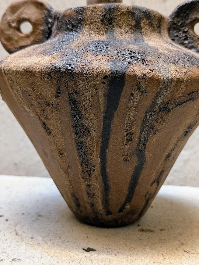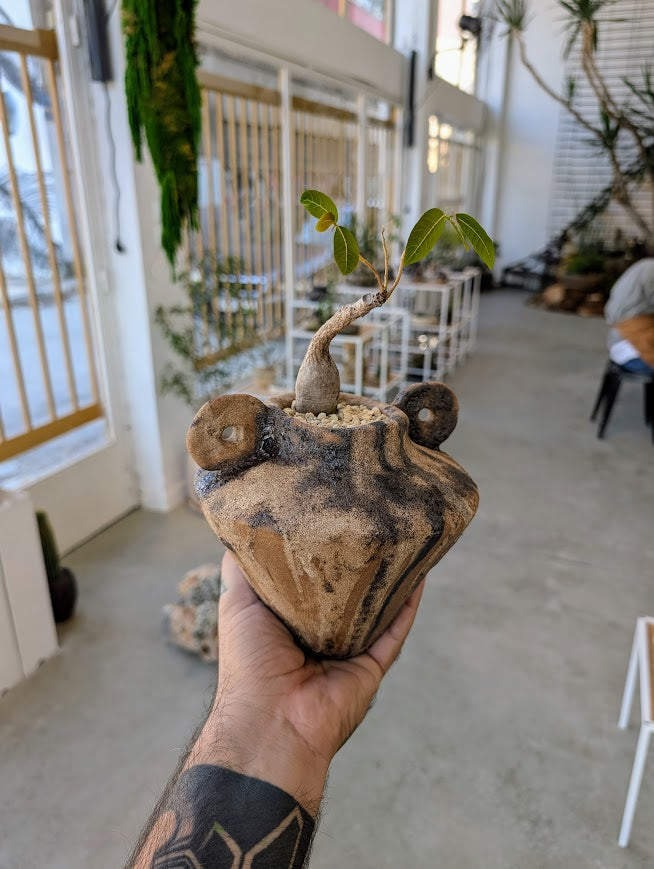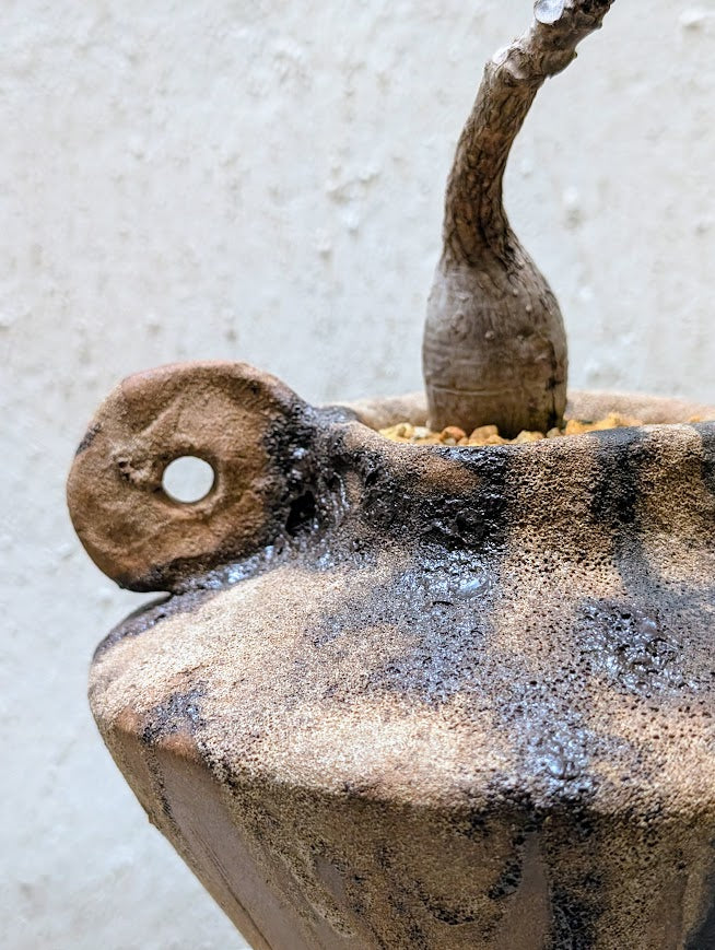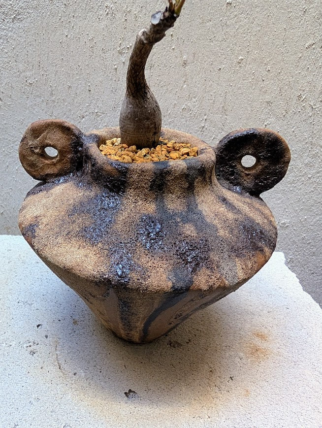 Φυτευμένο σε ένα χειροποίητο αγγείο Neraw, εμπνευσμένο από τα ακατέργαστα τοπία της Ανάφης. Το έργο αντλεί έμπνευση από τις κυκλαδικές κεραμικές παραδόσεις, με γήινες υφές, ηφαιστειακούς τόνους και δίδυμες λαβές που θυμίζουν αρχαίους αμφορείς. Η φθαρμένη επιφάνειά του αποτυπώνει τον διάλογο μεταξύ ήλιου, θάλασσας και πηλού.