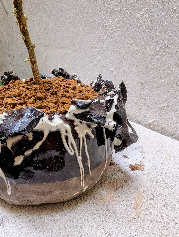 Together, plant and ceramic form a powerful composition where growth, resistance, and materiality collide.